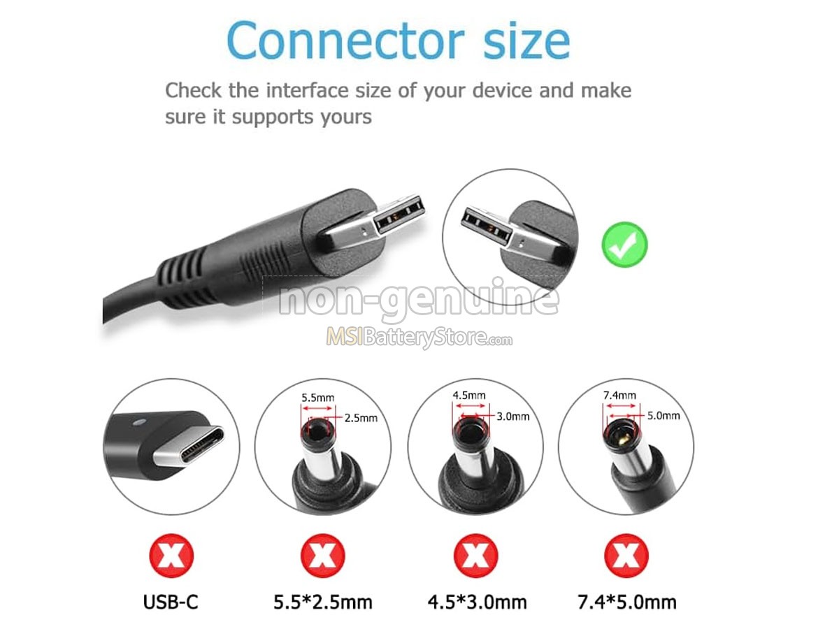 For the connector, simply make sure it fits your laptop’s charging port. If you are unsure about the connector size, feel free to contact us with your laptop model for confirmation.