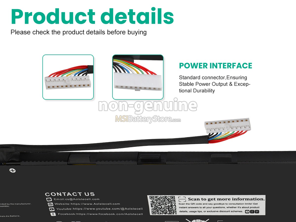 In addition to designing and manufacturing our MSI BTY-M57 battery based on the original battery shape, we also pay attention to the following details: