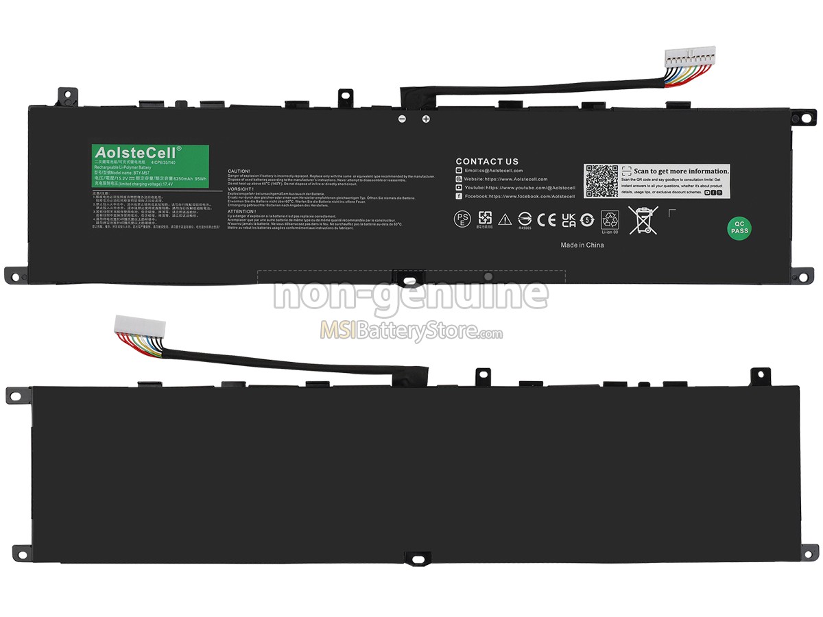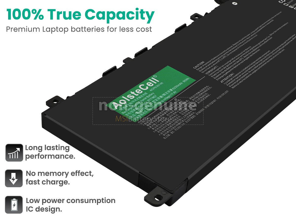 We provide MSI BTY-M57 laptop battery with similar performance compared to the original one at a lower price, thanks to our focus on MSI laptop batteries and direct online business without middlemen. We attach great importance to every MSI BTY-M57 battery we produce. They will only be delivered to you after strict safety tests, anti-aging tests, and quality inspections.