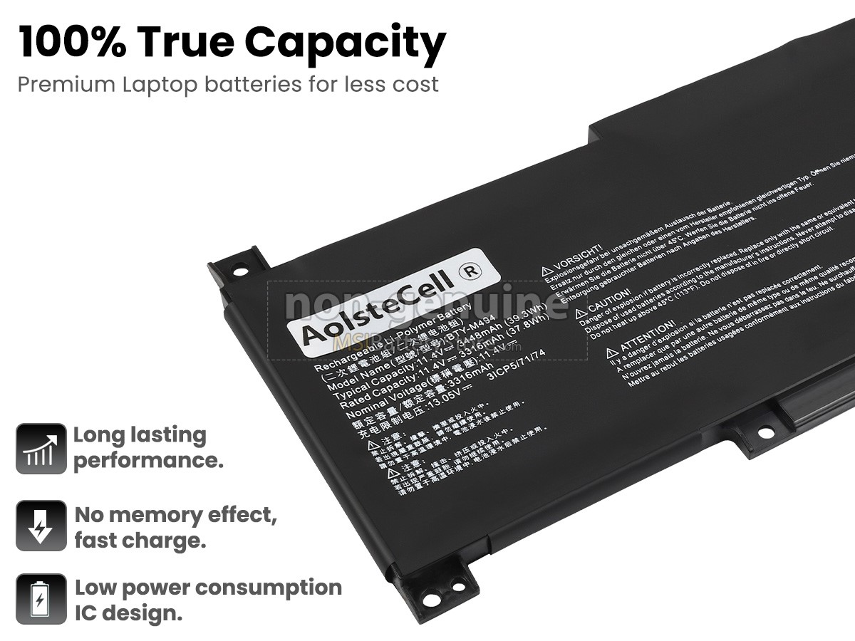 This MSI MODERN 14 C7M-091 battery replacement has a built-in imported Japanese Panasonic Li-Polymer battery cell, which has no memory effect, owns a long cycle life that can be recharged 800+ times. It also has a built-in smart circuit board adopting American TI chips, which has a variety of safety protections and can supply power to the laptop stably for a long time.